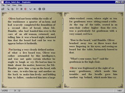 Anytexto is the software that will help you to read electronic books. It is easy-to-use, but powerfull tool that makes electronic text behavior as it was a real book. Anytexto has its own text-translating algorithms designed specifically for reading books. Additionally, you can read books aloud with the help of speech synthesis.