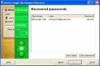 Atomic Google Talk Password Recovery will recover passwords to Google Talk accounts instantly and automatically. Forgot a password protecting your Google Talk instant messenger (IM)? You are just a step away of getting your account back. Atomic Google Talk Password Recovery will instantly display the original password of your Google Talk IM. If you have more than one account, all passwords will be automatically recovered.