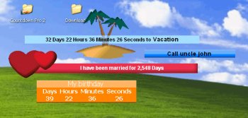 Countdown Pro adds a reminder to your desktop which can display the time left until events, remind you of appointments, display notes, and more. It has a built in screensaver and comes with many customizable themes.
