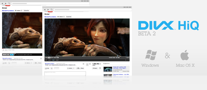 DivX HiQ boosts web video playback quality and performance by switching to the DivX Plus Web Player on popular websites like YouTube, Vimeo, and DailyMotion.