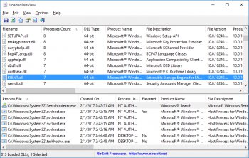 LoadedDllsView is a simple tool that scans all running processes on your system and displays the list of all DLL files loaded by these processes and the number of processes that load each DLL in the list. When selecting a DLL file in the upper pane of LoadedDllsView, the lower pane displays the list of all processes that use the selected DLL file. You can also select one or more DLL files and then export the list into comma-delimited/tab-delimited/html/xml file.