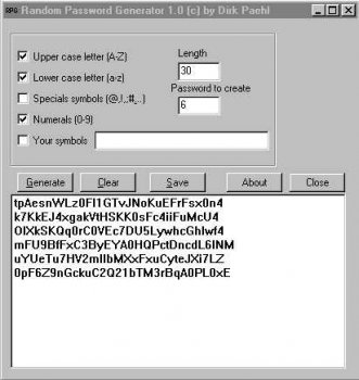 Random Password Generator generates any quantity of passwords with one mouse click. You do not have to think out new passwords, this program will do it for you.