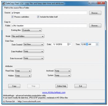 SafeCopy Free! is a freeware utility for Windows to copy files and folders from one location to another and preserve or modify file attributes and date-time stamps.