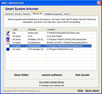 Smart System Informer will make it for you swiftly! Specific information includes computer ID, processor, BIOS, memory, disks, video, motherboard, monitor and other. This information shown as number and graphical views - you may evaluate your computer performance easily, and save the received data as a text file. Applications are shown at processes, startup and uninstall list.