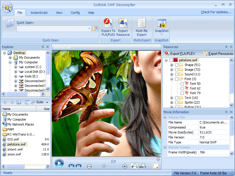 Sothink SWF Decompiler is a comprehensive solution for Flash fans to use as: SWF to FLA converter, SWF to FLEX converter, SWF elements extractor, and online Flash downloader.