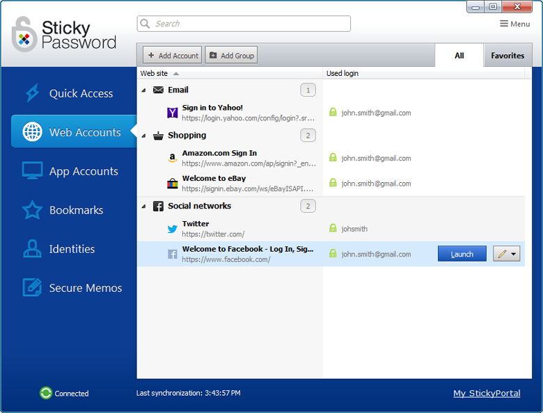 Sticky Password FREE is limited to 15 password accounts and 1 Identity.