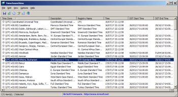TimeZonesView is a simple tool for Windows that displays all world time zones. For every time zone, the following information is displayed: name, description, current date/time in this time zone and date/time that daylight saving time begins and ends.