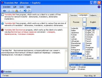 Translate.Net is free and open source client to many language services available online (translators, monolingual and bilingual dictionaries). 53 services, 70 languages, more of 4000 translations directions.