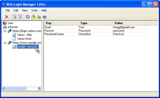 Web Login Manager is an Internet Explorer Password Manager that enables you to automatically log in to your favorite web sites with just one click. It seamlessly integrated with Internet Explorer and is accessible from a toolbar that becomes a part of Internet Explorer, HTML page context menu or Internet Explorer main menu. Web Login Password Manager saves all login information from web form as your profile to protected encrypted location on your computer and easily completes and submits login form when you next time select this profile.