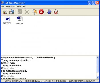 WordDecryptor is intended to recover information from Microsoft Word 97/2000 documents which are protected with the password if it is lost or unknown. It allows you to recover your document, but doesn't allow to recover password which file is protected with. Its algorithms are based on that fact that protected Word document contains “working encryption key” which is recovered by this program. This key allows to recover all information from the protected file.