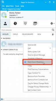 This plugin lets you to start Zoom instant meetings and invite contacts directly from Skype.